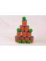 Jeu coloré composé de 10 boites haut. 10 cm à faire écrouler et de 6 balles.